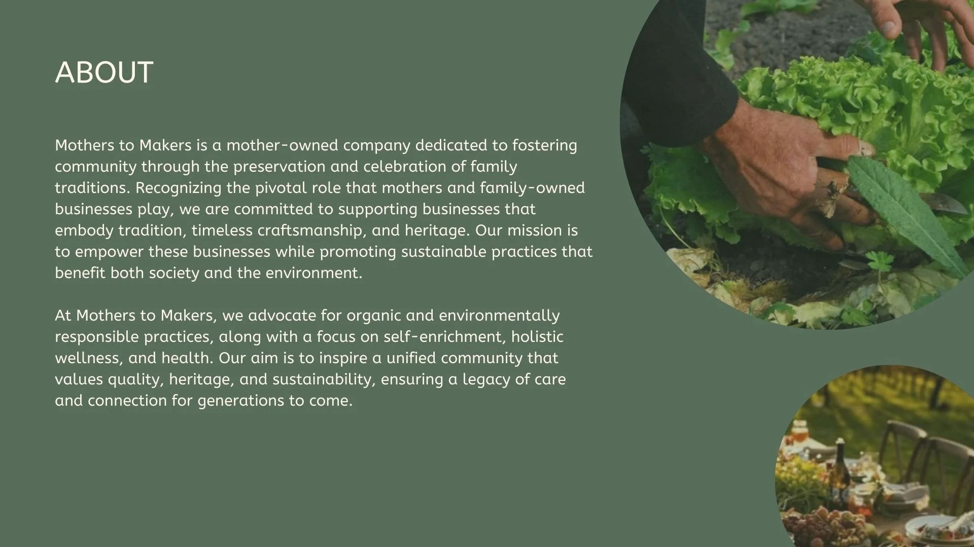 My team emphasized a commitment to supporting businesses that embody tradition, timeless craftsmanship, and heritage. Our mission was to empower these businesses while promoting sustainable practices that benefit both society and the environment. Each of my team members created a business that honors the principles of our parent company, Mothers to Makers.